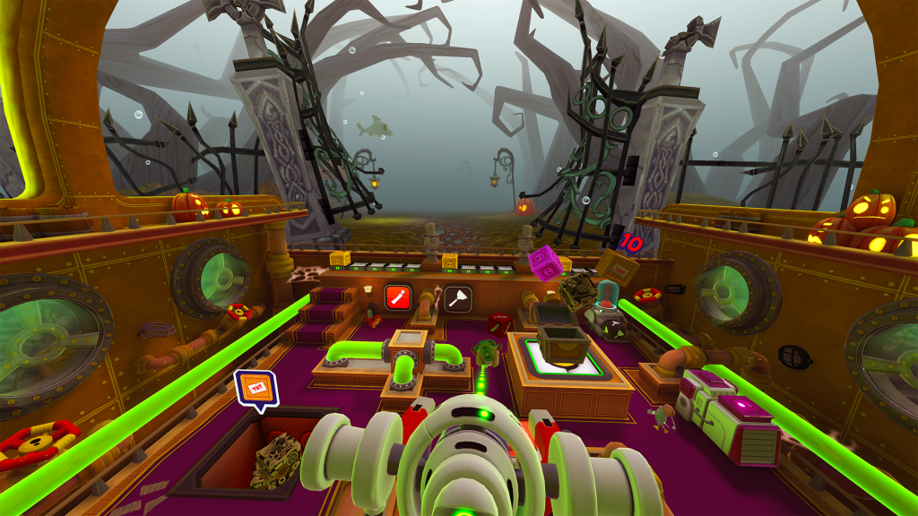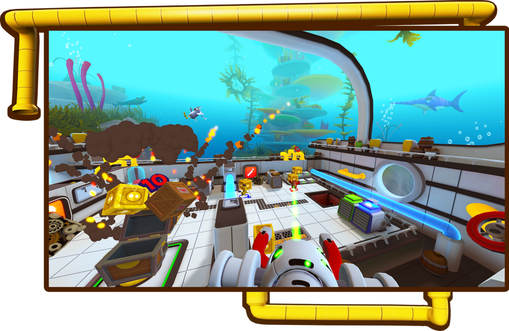 - The Captain (1 Player): Playing in PSVR, this player is responsible for clearing obstacles in the ocean and harpooning treasure chests with their Plunger Launcher. They can also help the Crew on deck by using their slingshot to throw boxes across the deck.